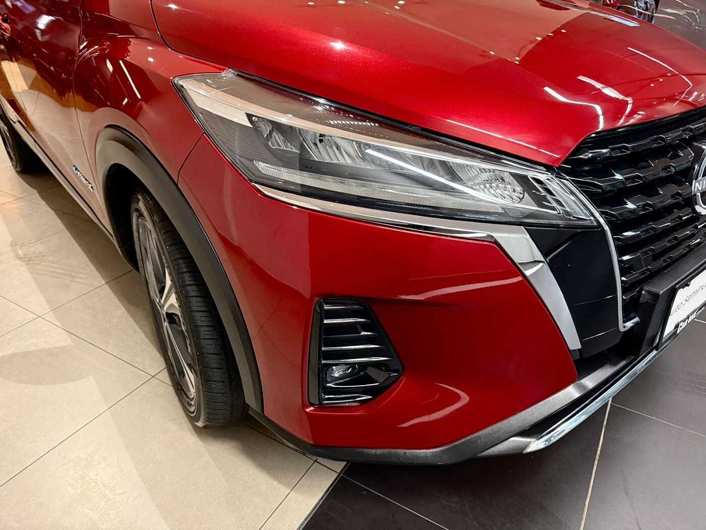 El Nissan Kicks Platinum e-POWER 2024 es un SUV compacto con tecnología híbrida única donde un motor eléctrico impulsa las ruedas, mientras un motor a gasolina de 3 cilindros genera electricidad para la batería, ofreciendo gran eficiencia (hasta 23.3 km/L) y potencia instant| Detalle de unidad: El Nissan Kicks Platinum e-POWER 2024 es un SUV compacto con tecnología híbrida única donde un motor eléctrico impulsa las ruedas, mientras un motor a gasolina de 3 cilindros genera electricidad para la batería, ofreciendo gran eficiencia (hasta 23.3 km/L) y potencia instantánea (134 HP). La versión Platinum destaca por su equipamiento de lujo como asientos de piel, pantalla táctil de 8 pulgadas con Android Auto/CarPlay, y un paquete completo de seguridad ADAS con frenado autónomo, control crucero adaptativo y detección de punto ciego, todo ello con un diseño moderno y rines de 17