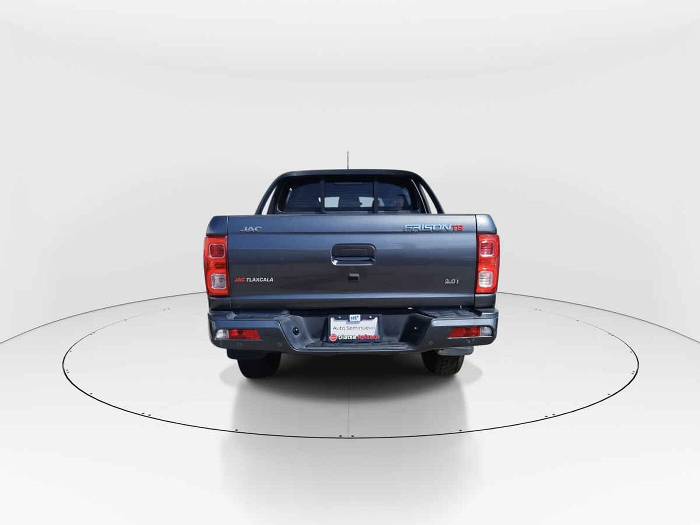 | Detalle de unidad:JAC Frison 2023 4p T8 Doble Cabina L4/2.0/T Man. Tipo de precio: Fijo Transmisión: Manual Dirección: No Disponible Vestidura: Tela Combustible o energía: Gasolina Segmento: Pick Up Color exterior: Gris Puertas: 4 Pasajeros: 5 Velocidades: 6 Cilindros: 4 Válvulas: 4 Potencia en HP: 102 Largo del vehículo (mm): 5,325 Ancho del vehículo (mm): 1,880 Alto del vehículo (mm): 1,830 Peso (Kg): 1,970 EQUIPAMIENTO: - Audio: bocinas, controles remotos del equipo de audio, puerto usb. - Confort: ajuste del volante eléctrico, cierre automático de puertas, espejo de vanidad, limpiador trasero, sensor de estacionamiento. - Seguridad: bolsa de aire acompañante, cinturones de seguridad delanteros, cinturones de seguridad traseros, faros de niebla, frenos abs, frenos de disco traseros, luces de xenon. - ref. MXP12-21075149