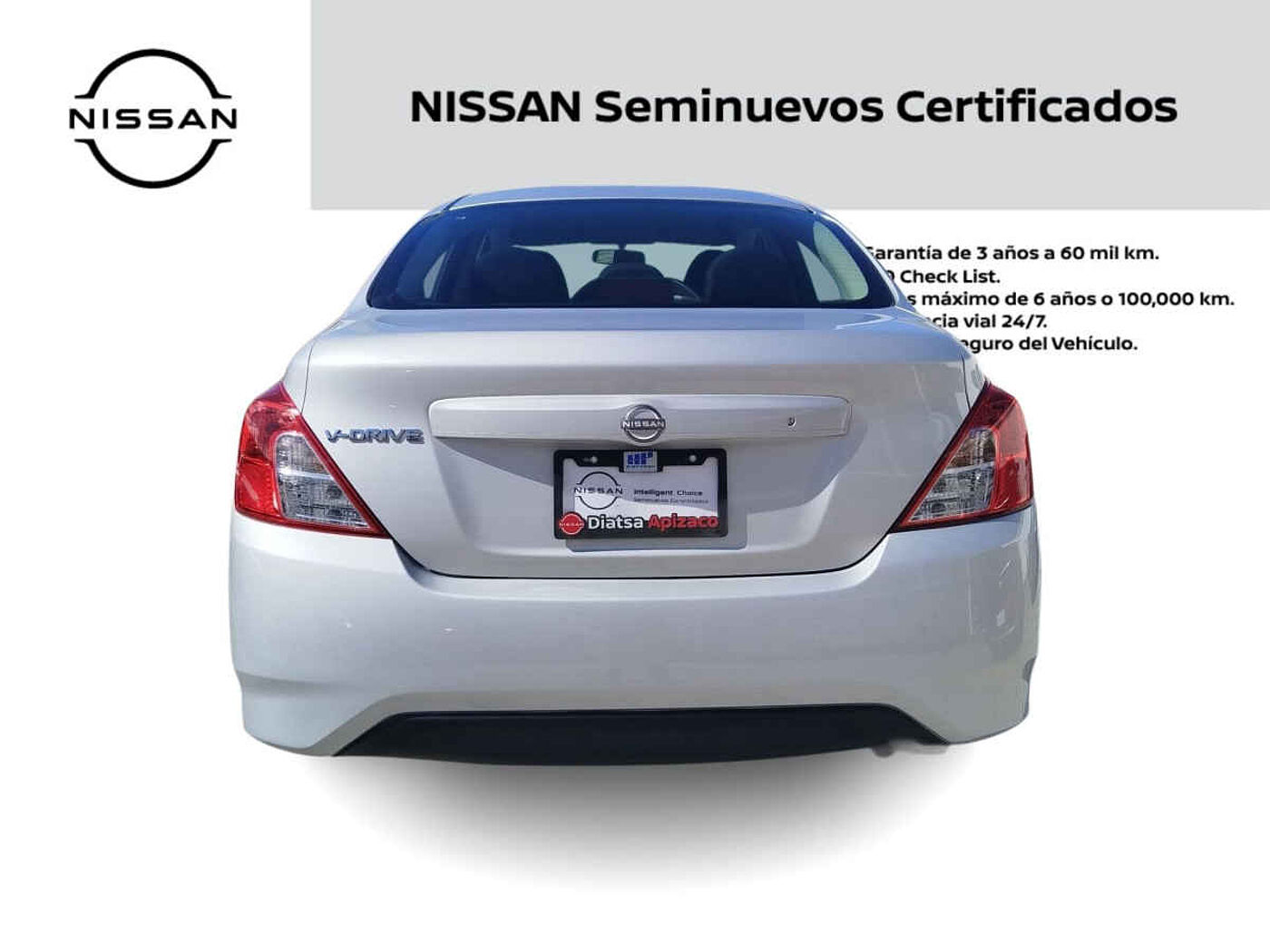 | Detalle de unidad:Nissan V-Drive 2025 4p L4/1.6 Man Audio. Tipo de precio: Fijo Transmisión: Manual Dirección: No Disponible Vestidura: Tela Combustible o energía: Gasolina Segmento: Sedán Condición: Usado Color exterior: Plata Color interior: Negro Puertas: 4 Pasajeros: 5 Velocidades: 5 Cilindros: 4 Válvulas: 4 Potencia en HP: 79 Largo del vehículo (mm): 4492 Ancho del vehículo (mm): 1695 Alto del vehículo (mm): 1509 Peso (Kg): 1059 EQUIPAMIENTO: - Audio: bocinas, entrada auxiliar, puerto usb. - Confort: ajuste del volante eléctrico, cierre automático de puertas, limpiador trasero. - Documentos: certificado. - Seguridad: anclaje para asientos infantiles, bolsa de aire acompañante, bolsa de aire laterales, bolsas de aire cortina, cinturones de seguridad delanteros, cinturones de seguridad traseros, frenos abs, frenos de disco traseros, luces de xenon. - ref. MXP12-21055128