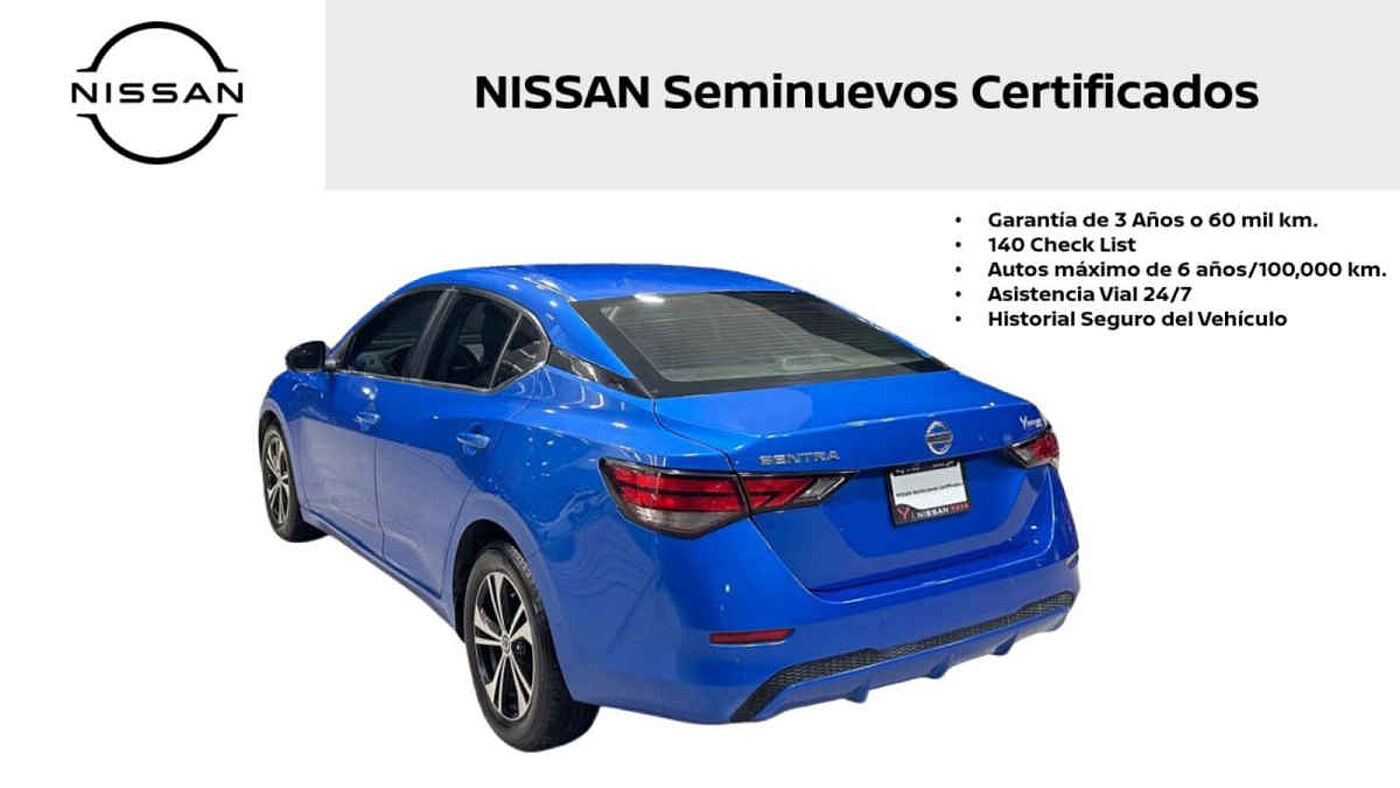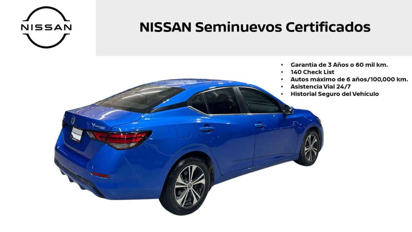 | Detalle de unidad:Nissan Sentra 2023 4p Advance L4/2.0 Aut. Tipo de precio: Negociable CRÉDITO DISPONIBLE* Enganche desde $93,340 y hasta 60 mensualidades de $6,658. Transmisión: Automática Dirección: Asistida Vestidura: Tela Combustible o energía: Gasolina Segmento: Sedán Condición: Usado Color exterior: Azul Aire acondicionado: Si Tracción: Delantera Blindaje: No Puertas: 4 Pasajeros: 5 Velocidades: 5 Cilindros: 4 Válvulas: 4 Potencia en HP: 145 Torque máximo libras/pie: 145 Capacidad del tanque (l): 47 Consumo en ciudad (Km/l): 17.2 Consumo en carretera (Km/l): 24.4 Consumo en combinado (Km/l): 19.8 Diámetro de rines (pulgadas): 16 Largo del vehículo (mm): 4640 Ancho del vehículo (mm): 1815 Alto del vehículo (mm): 1455 Peso (Kg): 1394 EQUIPAMIENTO: - Audio: bocinas, controles remotos del equipo de audio, entrada auxiliar, puerto usb. - Confort: aire acondicionado, altura del volante ajustable, apertura de cajuela y tapa combustible, apertura remota de cajuela, botón de arranque del vehículo, control automático de velocidad, desempañador trasero, espejo de vanidad, profundidad del volante ajustable, sensor de estacionamiento, sistema de control por voz para funciones, volante de posiciones, volante revestido en piel. - Documentos: acepto vehículos a cuenta. - Eléctrico: asiento conductor, computadora de viaje, elevadores de cristal. - Extra: rines de aluminio y/o aleación. - Gadgets: bluetooth. - Seguridad: bolsa de aire conductor, bolsa de aire laterales, bolsas de aire cortina, cinturones de seguridad delanteros, cinturones de seguridad traseros, control de estabilidad, control de tracción, faros de niebla, frenos abs, frenos de disco traseros. *La imagen de la unidad es solamente ilustrativa y puede variar de acuerdo al equipamiento por la línea del vehículo. El precio de lista es igual de contado o financiado expresado en moneda nacional. Cotización válida en solo esta versión. Sujeto a aprobación de crédito. Para más información de crédito u otra alternativa cons